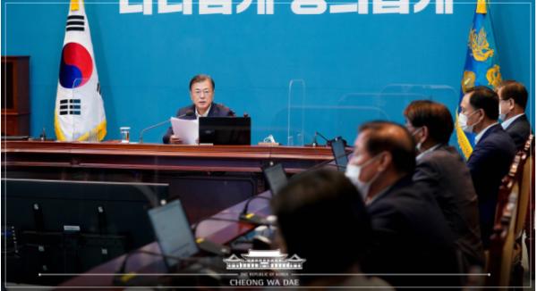 문재인 대통령은 5일 수석보좌관회의에서 연휴 기간 동안 일일 평균 이동량이 감소하는 등 "특별방역기간으로 보낸 특별한 추석이었지만 국민들께서 협조를 잘해주셨다"며 감사 인사를 전했다.