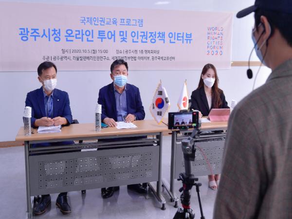 광주광역시는 5일 오후 온라인으로 아시아국가 공무원들과 인권정책을 공유하고 광주시청을 투어 하는 시간을 가졌다.