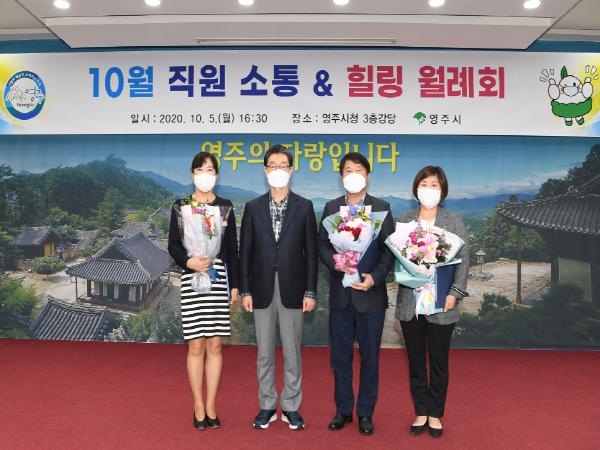 영주시는 지난 5일 시청강당에서 개최한 10월 직원 소통 & 힐링 월례회에서 ‘2020년 민원서비스 개선 우수부서’의 시상과 발표회를 가졌다.