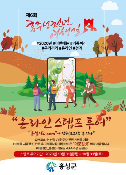 홍성군은 코로나19 예방을 위해 온라인 인증 방식으로 ‘제6회 홍주성천년여행길 걷기행사’를 개최(10월 1일 ~ 31일, 1달간)한다고 밝혔다.