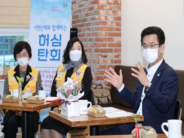 허태정 대전시장은 6일 오전 10시 30분 대한적십자 대전세종지사에서 자원봉사자, 관계 직원 등 15명이 참석한 가운데 ‘허심탄회’를 개최했다.