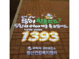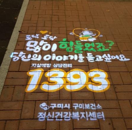 구미보건소, 구미정신건강복지센터는 9월 29일 자살예방 메시지 전달과 생명존중 문화조성을 위해 ‘마음의 가로등’ 로고젝터를 확대 설치하였다.