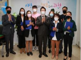이번에 시장 표창을 받은 공무원은 과천시립요양원 국·도비 확보 및 행정절차 기간 단축에 기여한 사회복지과 지재현 노인복지팀장, 양재천 흐름 개선을 통한 수질 및 하천 경관 개선에 기여한 환경위생과 주종순 주무관, 비대면 소통창구 개발로 시민과의 소통 지속 유지에 기여한 자치행정과 안미영 시민사회소통팀장, 개발사업지 내 주민을 위한 문화체육시설 건립 추진한 도시개발과 김나정 주무관, 코로나19에 따른 착한임대인 재산세 감면 알림 홍보문을 건축물 소유주에 개별 발송한 세무과 김수민 주무관 등이다.