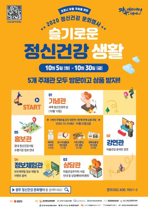 광주광역시는 세계 정신건강의 날(10월10일)을 기념해 코로나 우울로 마음회복이 필요한 시민들을 위한 ‘2020 정신건강 문화행사’를 온라인으로 개최했다.