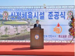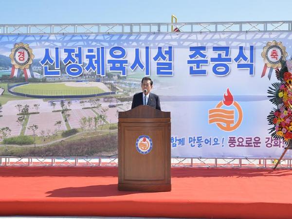 군은 유천호 강화군수, 배준영 국회의원 강화군의회 신득상 의장이 참석한 가운데 신정체육시설 준공식을 6일 개최했다. 행사 전 방역소독 작업을 완료하고 발열검사와 마스크 착용 확인 등 생활 속 거리두기 방역 지침을 철저히 준수한 가운데 주민 100명 이하로 간소하게 진행했다.