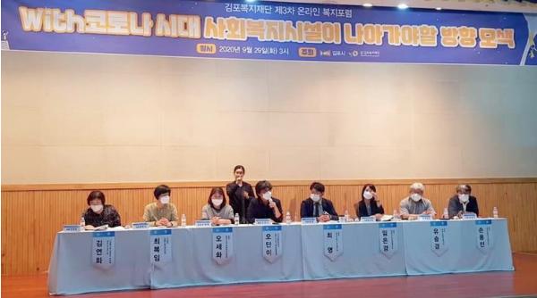 김포복지재단은 지난 9월 29일 ‘김포복지재단 제3차 복지포럼(온라인)’을 개최하고 위드(with)-코로나 시대 사회복지시설이 나아가야 할 방향 모색을 위한 토론회를 진행했다.