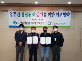이번 협약은 공동주택 관리소와 정신건강관리 연계체계를 구축해 지역 주민들에게 효율적인 정신건강서비스를 지원함으로써 지역사회 정신건강을 증진하기 위해 추진됐다.