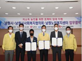 남원시는 코로나19로 침체된 저소득 농민에게 안정적인 농업경영과 농촌 정착을 도모하기 위한 업무협약을 6일 남원시 농업기술센터 회의실에서 가졌다.