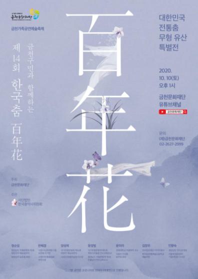 금천문화재단은 10월 10일(토) 오후 1시 금나래아트홀에서 열리는 ‘대한민국 전통춤 무형유산 특별전’을 금천문화재단 유튜브 채널에서 선보인다.