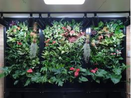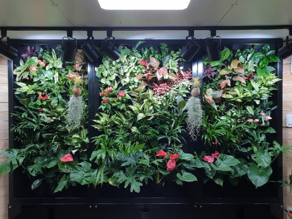 스마트가든에는 실내 파고라 설치 후 내부에 식물을 식재하는 큐브형과 건물 내부 유휴 벽면에 설치하는 벽면형이 조성됐다.