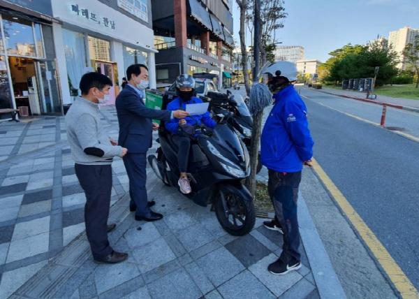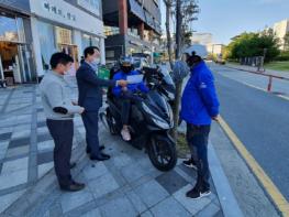 여상수 동장과 공무원들은 배달대행업체 및 배달전문음식점을 대상으로 이륜차 사고 예방을 위한 홍보물을 배포하며 배달종사자와 시민의 안전을 위해 교통법규를 철저히 준수해 줄 것을 요청했다.