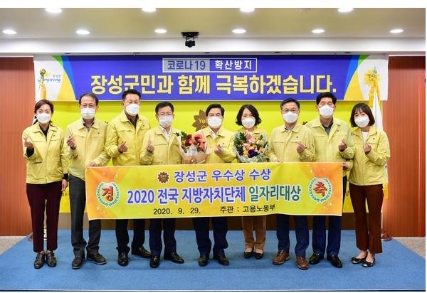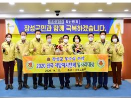 장성군이 고용노동부 주관 ‘2020 전국 지방자치단체 일자리대상’ 평가에서 우수상을 수상해 상사업비 9000만원을 확보했다.