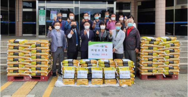 이날 기탁 받은 쌀(10kg) 200포는 관내 어려운 이웃에게 전달됐다.