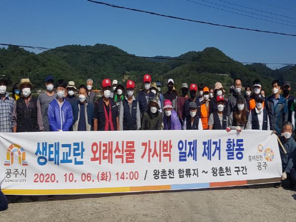 공주시가 지난 6일 금강변과 지류 하천인 왕촌천 일대에서 ‘가시박 일제 제거의 날’ 행사를 가졌다.