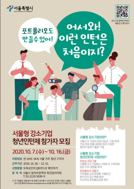 서울시는 총 661개「서울형 강소기업」으로부터 채용계획서를 신청 받아 지난 9월 29(화) 청년인턴 지원업체를 선정하였고, 인턴 채용기업은 10월 7일(수) ~ 22일(목)까지 기업별로 채용공고, 면접 등 절차를 진행해 10월 23일(금)까지 선발한다.