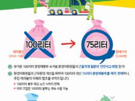 이에 따라, 시는 100리터 종량제봉투 제작을 10월부터 중단하고 75리터 종량제봉투를 제작해 10월 중 판매(장당 2,000원)할 계획이다.