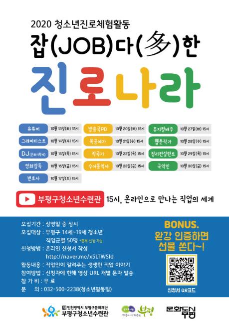 멘토링 영상은 부평구청소년수련관 유튜브 채널에서 만날 수 있으며, 사전 신청자에 한해 영상 URL를 개별 문자 발송할 예정이다. 신청은 상영일 중 상시로 가능하며 온라인 신청서를 작성하면 된다.
