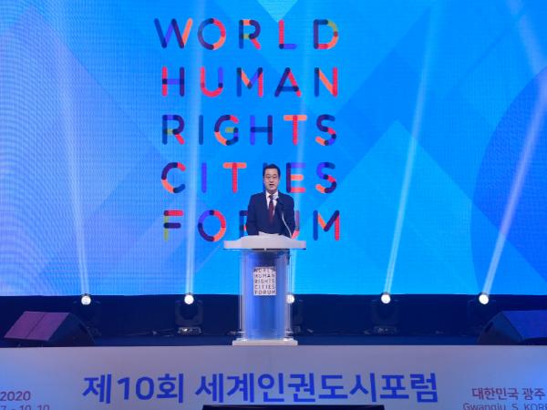 또 “수많은 사람들이 각종 폭력과 억압, 전쟁과 테러 그리고 기후변화와 신종 감염병으로부터 소중한 인권을 위협받고 있는데 광주가 연대의 손길을 내밀겠다”고 밝혔다.