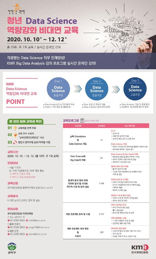구는 데이터 사이언스(Data Science) 분야 역량 강화를 통하여 청년 일자리와 취업을 지원하기 위하여 본 교육과정을 개설했다.