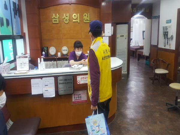 사천시 남양동시민안전봉사대는 지난 6일 관내 주민들의 이동과 접촉이 많은 장소를 중심으로 손소독제를 배부하고 코로나19 예방 수칙에 대한 홍보활동을 가졌다.
