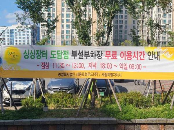 시는 도담동 상가를 이용하는 시민의 주차불편을 해소해 상가 활성화에 도움을 주고자 싱싱장터 도담점 부설주차장을 점심시간대와 야간 시간대 무료로 개방해왔다.