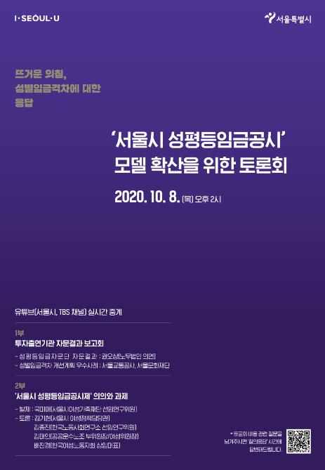 ‘뜨거운 외침, 성별임금격차에 대한 응답’이라는 부제로 코로나-19 감염 예방을 위해 무관중 토론회로 진행하며, 서울시 및 TBS 유튜브 채널을 통해 실시간 중계한다.