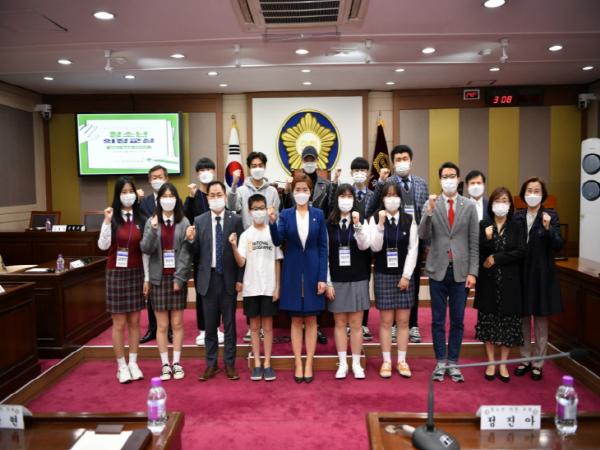 이번 의정교실 모의의회에서는 지난 8월에 공모한 포천시 청소년 정책제안대회에서 선정된 청소년 참여예산제 도입과 관련한 안건을 상정해 포천시 주민참여예산제의 청소년참여 확대와 주민참여예산제의 인식조사를 활용한 5분 자유발언을 시작으로 질의응답, 안건 심의 및 표결 등 청소년 주도로 진행됐다.
