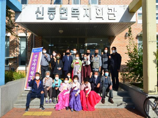 8일 ‘빛담사’회원들은 신등면복지회관에서 관내 75세 이상 어르신 50명의 장수사진을 촬영했다.
