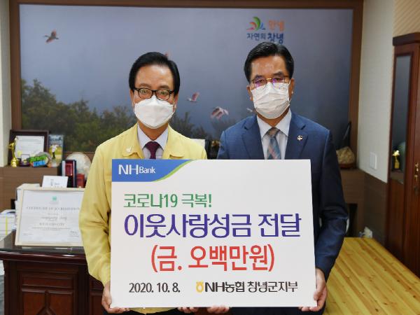 한편 NH농협은행 창녕군지부는 지난 1월 설명절을 맞아 창녕사랑상품권 1,000만원을 기탁했으며 3월에는 코로나19 특별모금에 동참하여 500만원을, 8월에는 집중호우로 인한 피해를 복구하는데 500만원 상당의 현물을 기탁하는 등 꾸준히 이웃사랑을 실천해 나가고 있다.