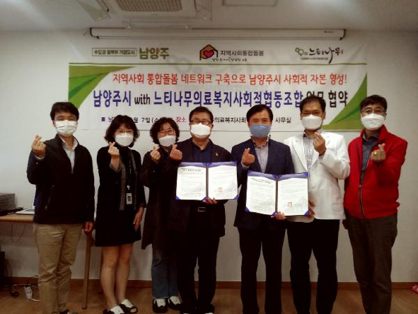 남양주시와 느티나무의료복지사회적협동조합은 지난 7일 2020년 지역사회 통합돌봄 선도사업(노인 가구)의 협력적 진행체계를 마련하기 위한 업무 협약식을 진행하였다.