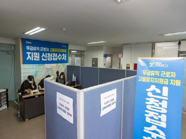 광진구가 코로나19로 인한 집합금지 및 집합제한, 영업제한 등으로 무급휴직을 실시한 기업체 근로자에게 고용유지지원금을 지원한다.