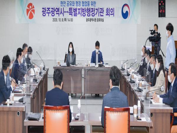 광주광역시는 8일 오후 시청 중회의실에서 지역 내 국가기관인 특별지방행정기관 기관장들과 회의를 열어 협업과제를 점검하고 기관 간 현안에 대한 의견을 교환했다.