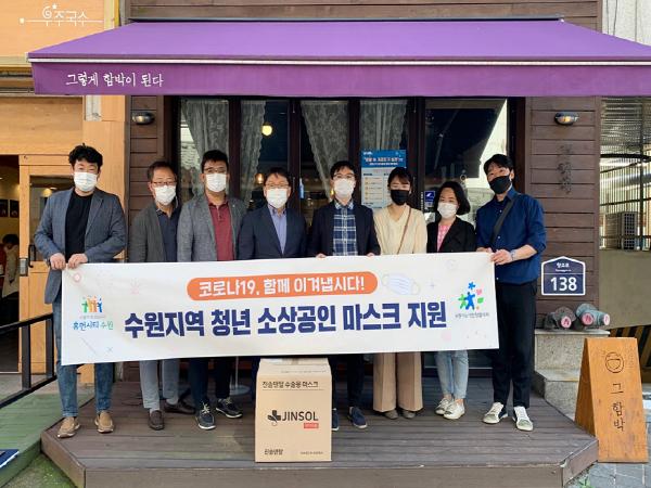 수원시노사민정협의회가 코로나19 장기화로 어려움을 겪는 청년 소상공인들에게 마스크 2000장을 전달했다.