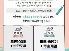 신청은 10월 12일 오전 10시부터 다음날까지 도봉구 교육포털 사이트인 도봉배움e를 통해 가능하다. 대상자는 도봉구에 거주하는 초등학생 192명과 초·중·고등학생 학부모 16명으로 선착순 모집한다.