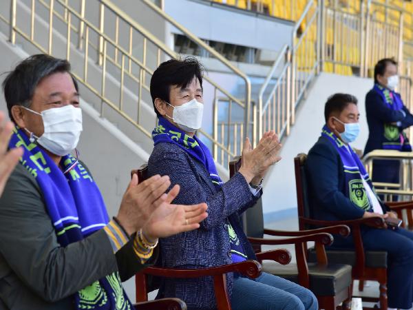 이날 홈경기를 참관한 구단주인 조규일 진주시장은 “코로나19 확산 속에서 방역에도 힘쓰며 리그 후반까지 열심히 해준 선수단과 사무국 직원 여러분께 감사드린다”며, “남은 경기도 잘 마무리하여 진주시민축구단이 코로나19로 인해 힘든 시기를 보내고 있는 시민들에게 힘이 되고 자랑이 되어 주시기를 바란다”고 밝혔다.