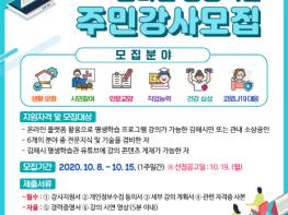 김차영 인재육성지원과장은 “오프라인 위주로 활동한 주민강사를 비대면 온라인 강사로 활동할 수 있는 기회를 제공하고자 한다”며 “이번 기회를 통해 신규 온라인 주민강사 발굴을 기대하고, 포스트코로나 시대를 선도하는 온라인 평생학습 체제 구축으로 시민들이 언제나 배울 수 있는 분위기 조성에 노력하겠다”고 밝혔다.