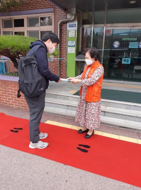 군포시 궁내동 지역사회보장협의체는 10월 12일 아침, 관내에 위치한 경기폴리텍고등학교에서 코로나19로 지친 학생들의 심신을 위로하고 2학기를 힘차게 보내자는 취지에서 등굣길 학생 140여명에게 마스크를 전달했다.