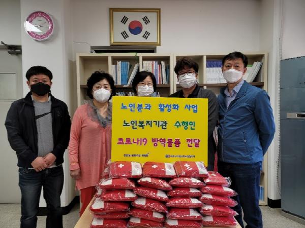 방역물품으로는 손소독제, KF-AD 마스크, 항균물티슈 등 개인 방역에 꼭 필요한 물품으로 노인분과 위원들이 함께 모여 직접 구성했다.