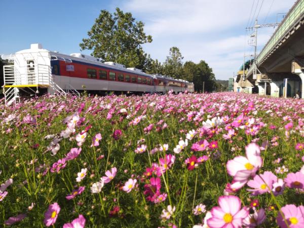 특히 고잔역 주변에는 가을 코스모스와 함께 지난해 안산시가 디젤전동차 무궁화호 2량을 개조해 조성한 문화예술플랫폼 Station-A에서 가족, 연인들과 함께 공방과 커피숍 등 힐링을 즐길 수 있다.