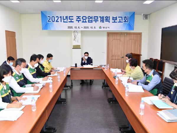 양산시가 10월 6일부터 8일까지 3일간 책임관, 부서장이 참석한 가운데 ?년 신규시책 및 시정 주요업무 보고회’를 열고 시정 발전에 대한 심도 있는 의견 교환의 시간을 가졌다고 밝혔다.