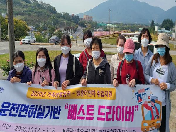 지난 7월, 합천경찰서와 연계하여 운전면허학과시험반을 진행했으며 학과시험에 합격한 10명의 결혼이민자를 대상으로 실기시험까지 연계하여 운전면허자격취득반을 개설하게 됐다.