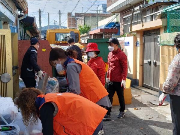 이날 작업에는 공무원 8명, 동 자생조직 7명, 준법지원센터 10명이 함께 해 생활쓰레기 12톤을 수거했으며, 곰팡이와 오물로 오염된 집안 내부는 동 복지기동대 집수리서비스와 연계해 도배, 장판교체작업을 함께 진행했다.