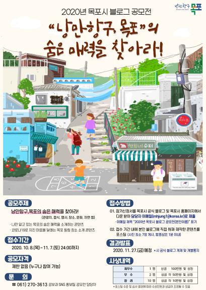 목포시는 낭만항구 목포의 숨은 매력을 찾고 더 많은 사람들과 소통하기 위해 ‘2020년 목포시 블로그 공모전’을 개최한다.