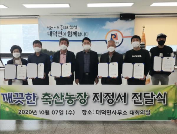 안성시 대덕면은 지난 7일 깨끗한 축산농장 지정서 전달식을 개최했다고 밝혔다.