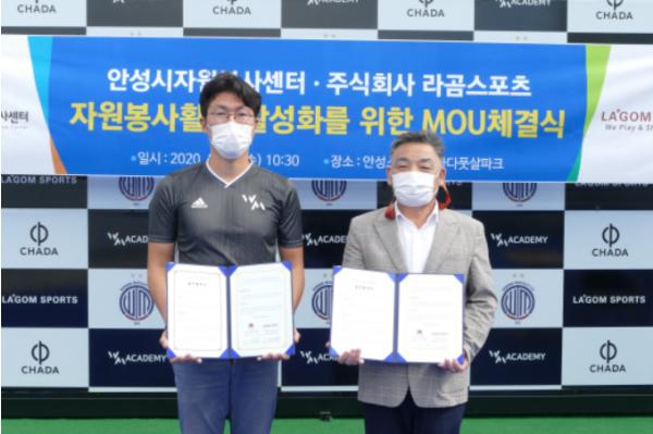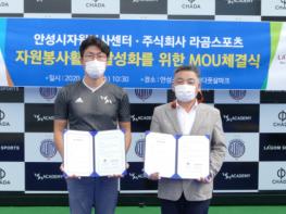 안성시자원봉사센터는㈜라곰스포츠와 안성시 자원봉사 활성화를 위해 업무협약을 체결했다고 밝혔다.