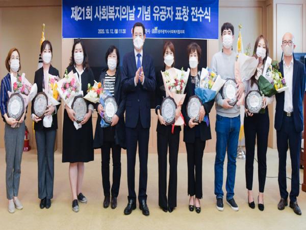 광주광역시와 광주사회복지협의회는 12일 오전 시청 비즈니스룸에서 ‘제21회 사회복지의 날’을 기념해 그동안 사회복지 최일선에서 헌신한 유공자 16명에게 광주시장 표창패를 수여했다.