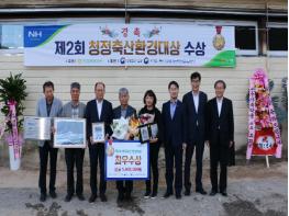 청정축산환경대상은 축산환경개선을 위해 노력한 축산농가의 공로를 치하하고자 농협경제지주가 주관하고 농림축산식품부·환경부·나눔축산운동본부가 후원하고 있으며, 이날 열린 시상식은 농협경제지주 축산경제(대표 김태환)가 해당 농가를 최소한의 인원으로 방문하여 환경부장관상과 함께 상금 500만원을 전달하였다.