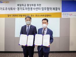 경기도주식회사가 경기도자원봉사센터와 손을 잡고 경기도 공공배달앱 ‘배달특급’ 성공을 위해 함께 달린다.
