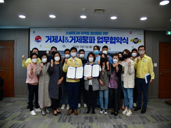 거제시와 소상공인 단체 거제뭉파(회장 차주연)는 지난 10월 12일거제시청 시장실에서 소셜미디어 마케팅 활성화를 위한 협약을 했다.