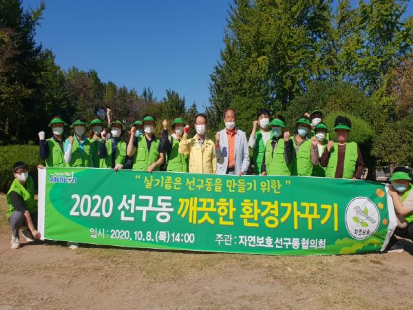 사천시 자연보호선구동협의회(회장 김형내)는 지난 8일 망산공원 일원에서 선구동 전 조직단체 회원 등 50여 명이 참석한 가운데 2020 선구동 깨끗한 환경가꾸기 행사를 개최했다.